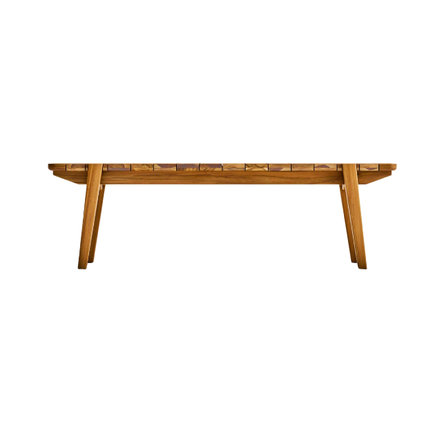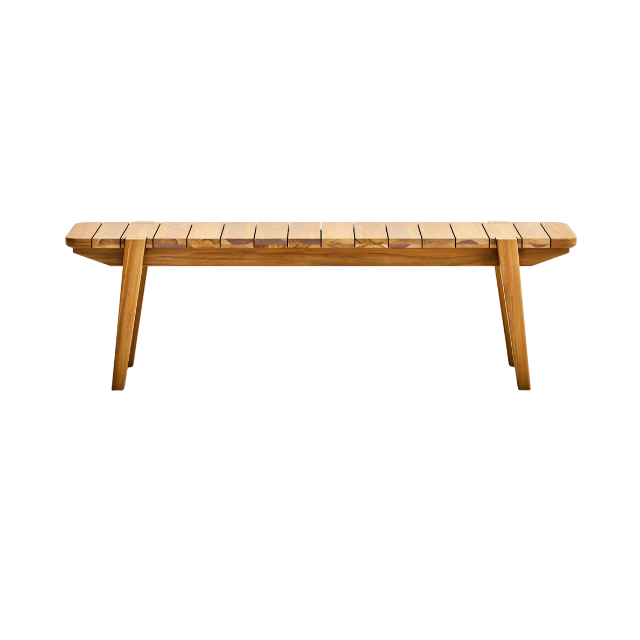 Bench Long Outdoor Resort Teak with Slatted Seat and Tapered Legs