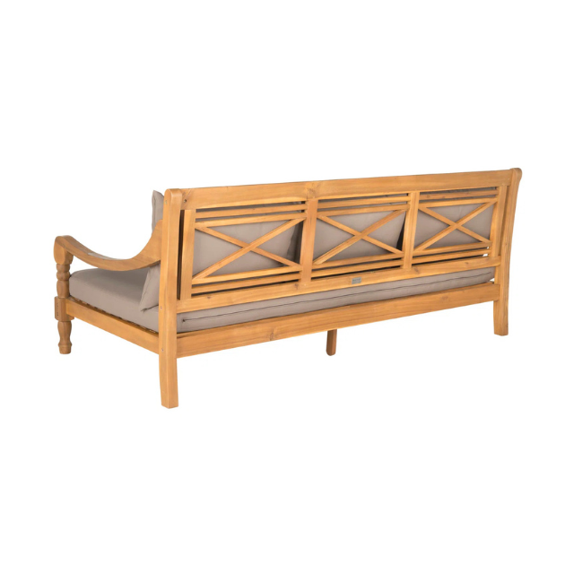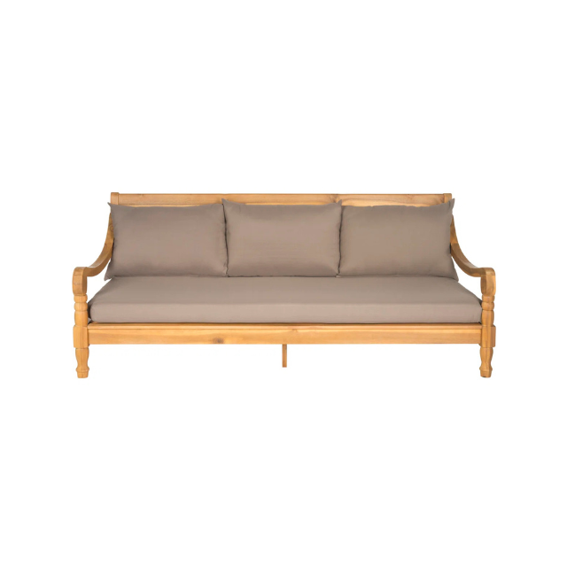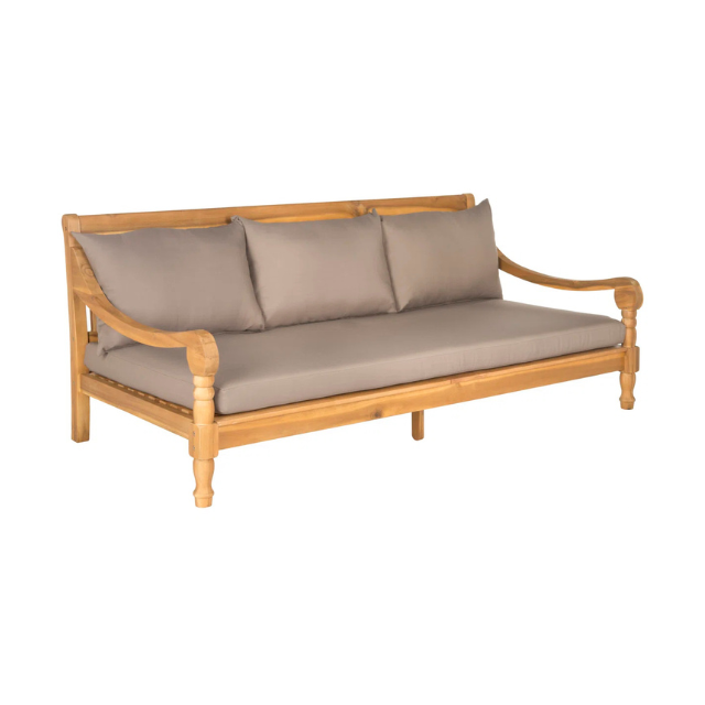 Classic Curve Garden Deep Sofa Teak Wood Three Seater with Thick Outdoor Cushion