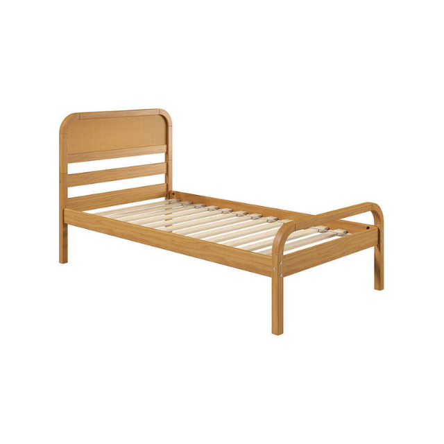 Contemporary Solid Teak Kids Bed with Rounded Edge Headboard and Open Slat Support