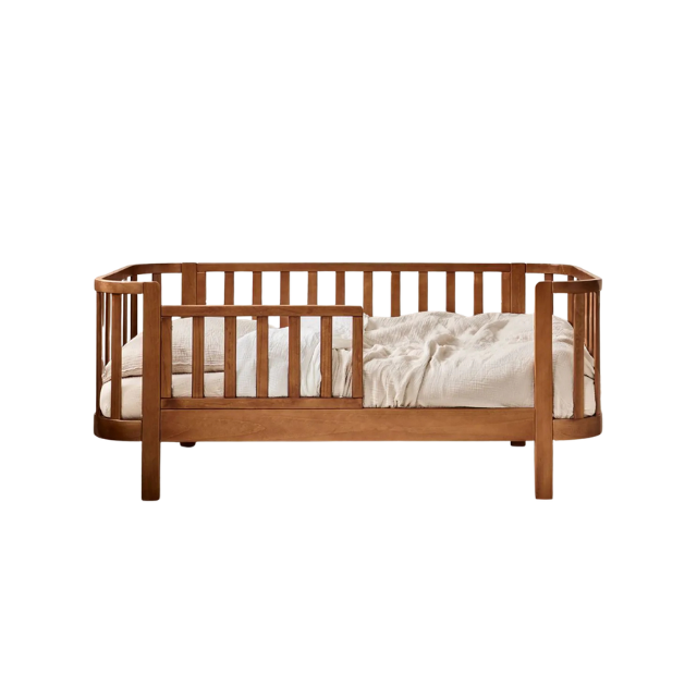 Executive Teak Wood Kids Bed with Wraparound Safety Rails and Open Slat Platform