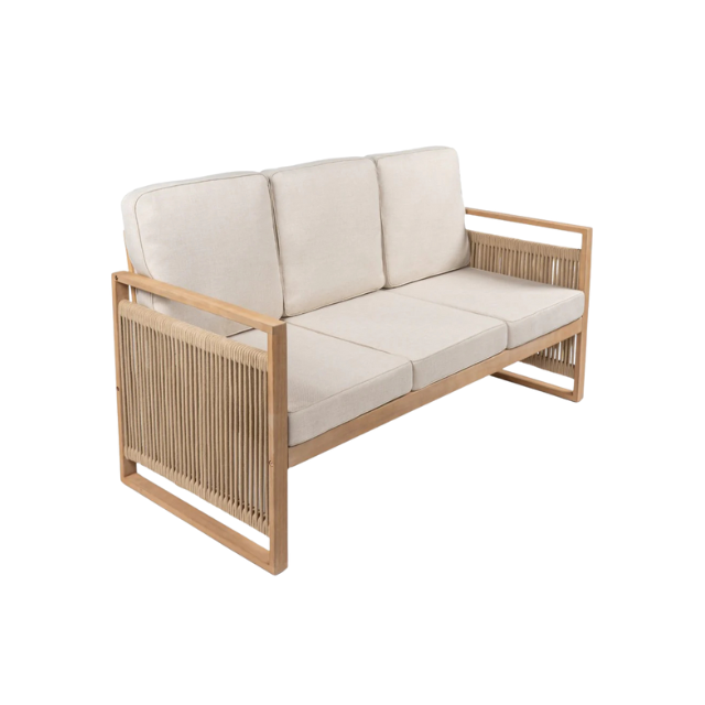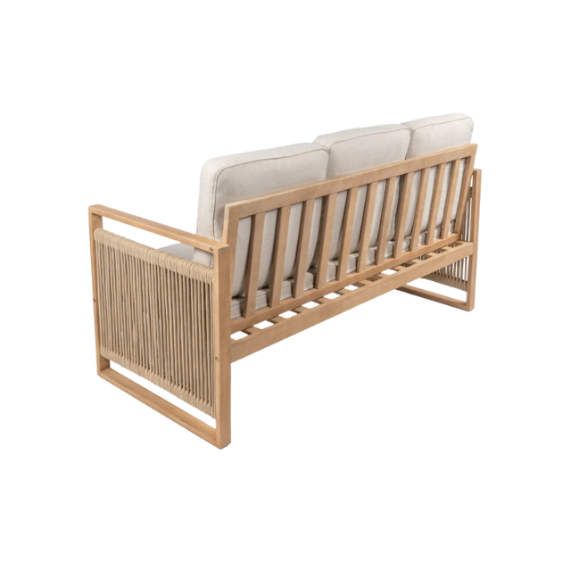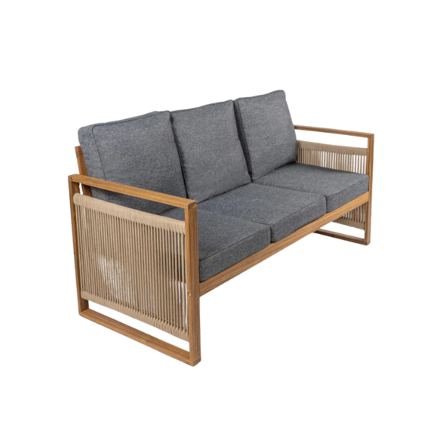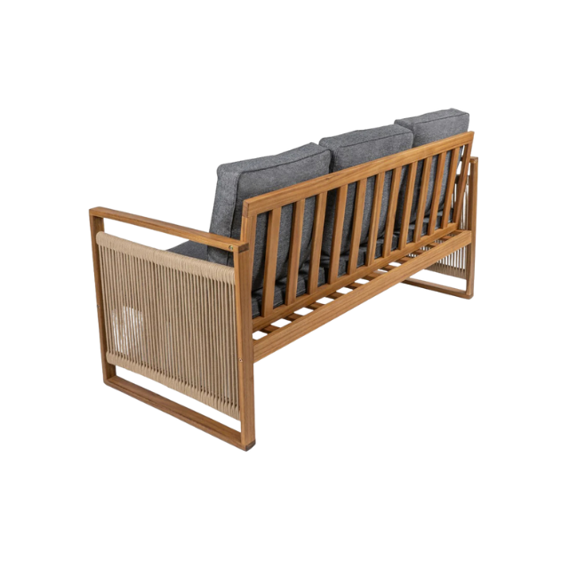 Garden Deep Sofa Teak Wood Three Seater with Rope Side Detail