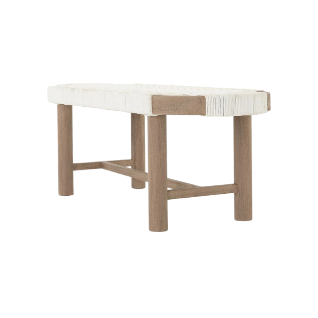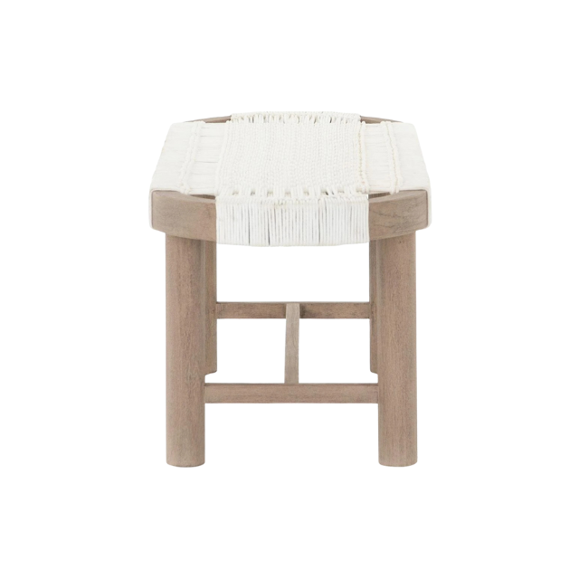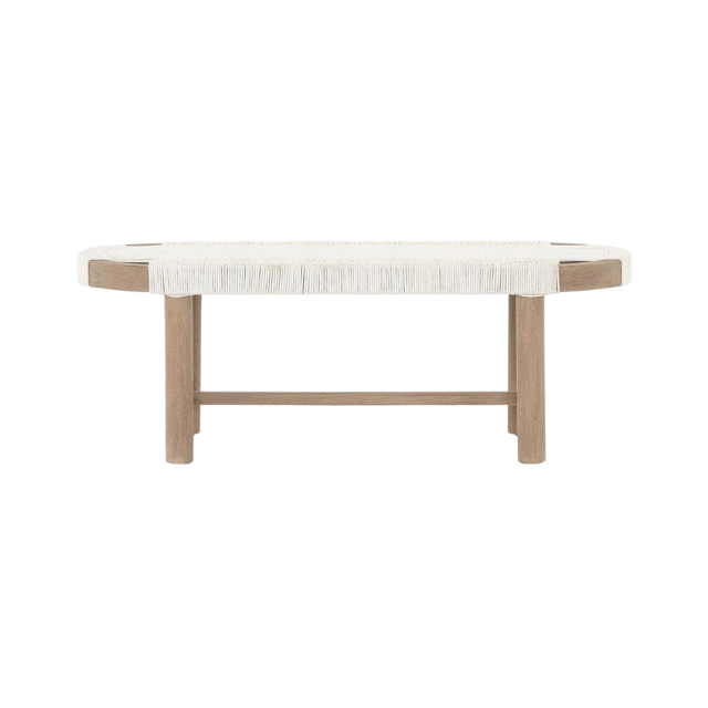 Light Tone Teak Rope Bench with Rounded Edge Seat