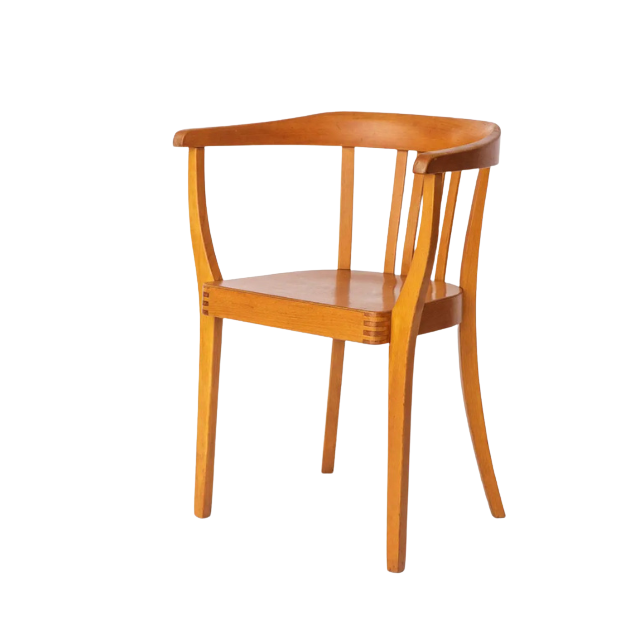 Mid Century Teak Dining Armchair with Curved Backrest and Sturdy Solid Wood Frame