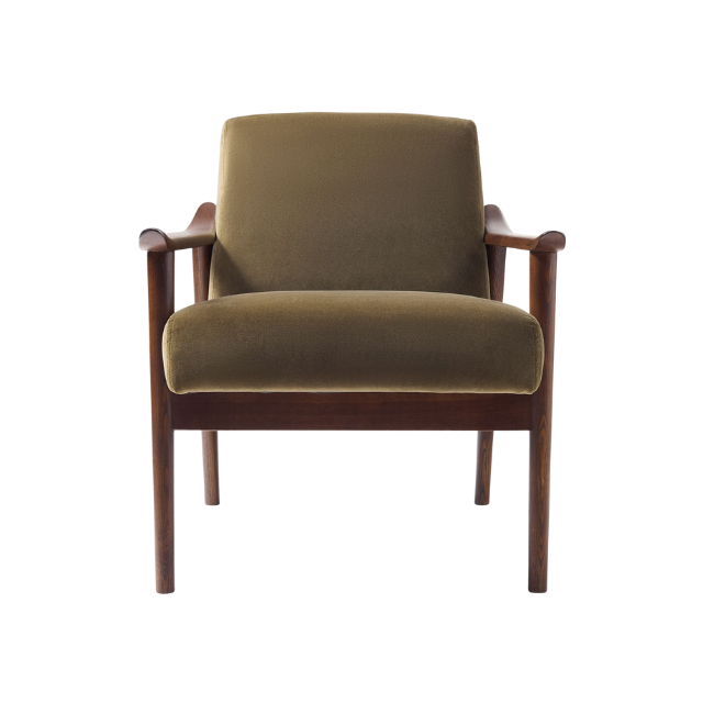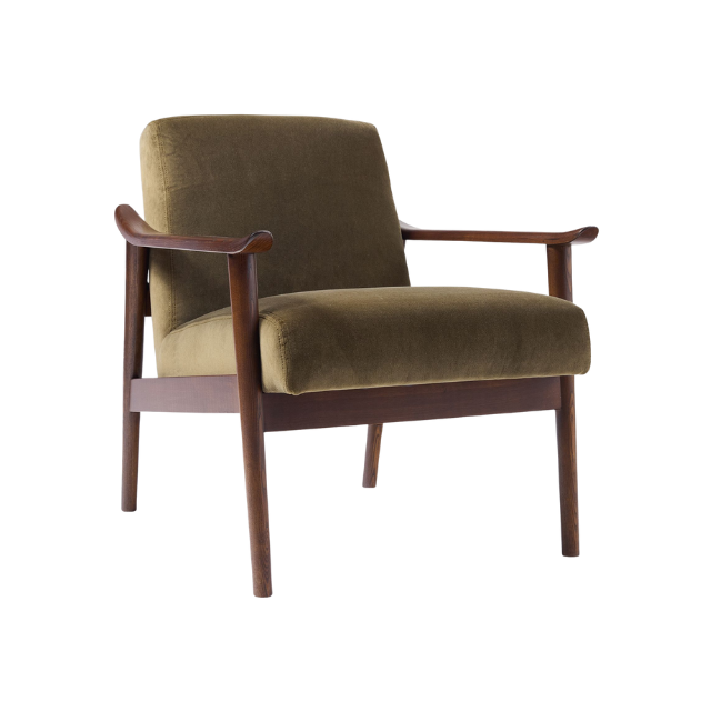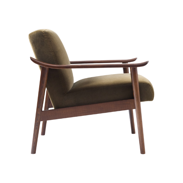 Modern Relax Teak Wood Chair with Fabric Cushion Seat and Curved Wooden Armrest