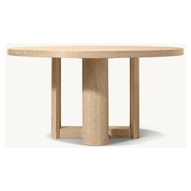 Modern Solid Teak Round Dining Table with Contemporary Pedestal Base