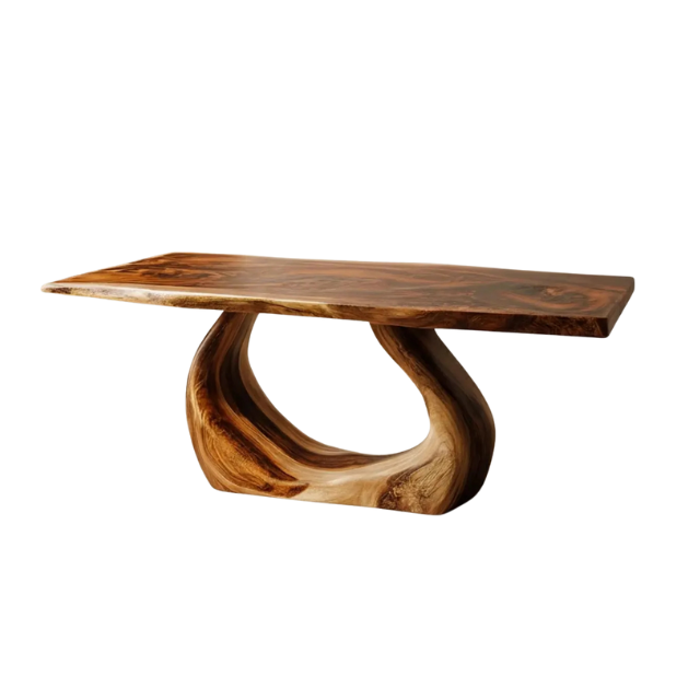 Organic Flow Solid Wood Slab Dining Table with Sculptural Base
