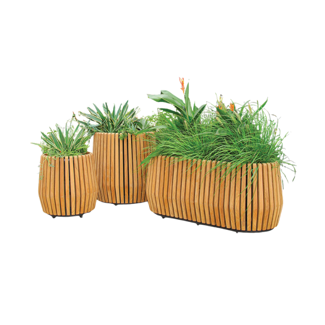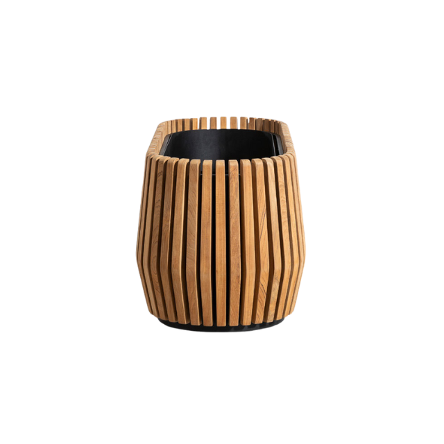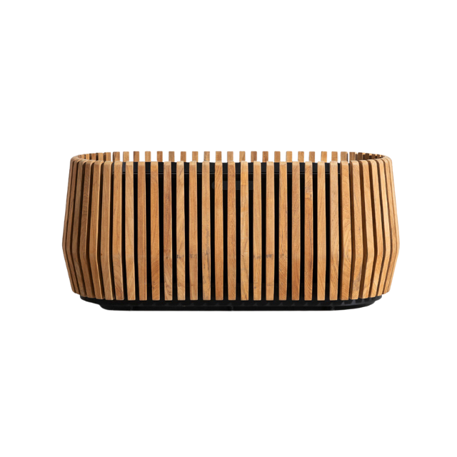 Oval Slatted Teak Outdoor Planter Curved Modern Shape