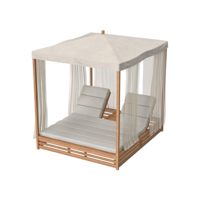 Pavilion Style Teak Wood Outdoor Beach Cabana Daybed