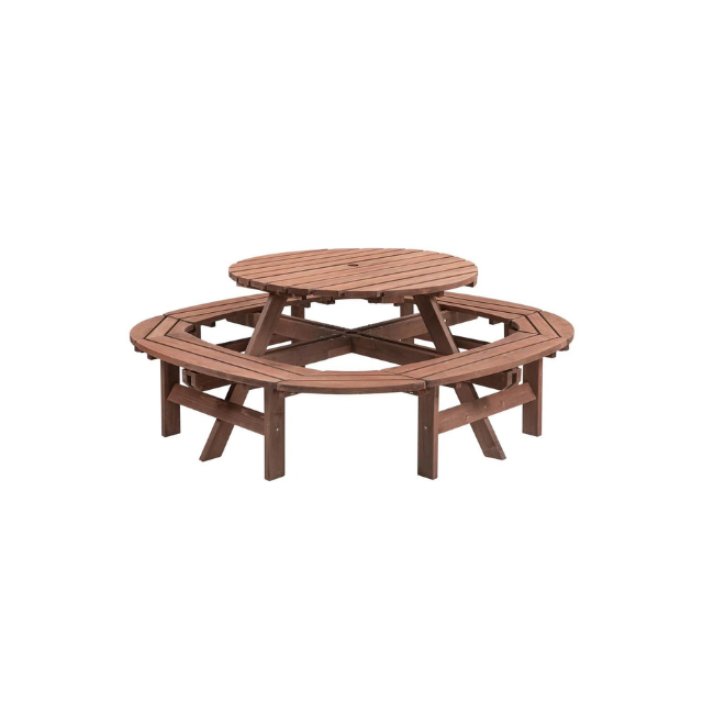 Round Wooden Outdoor Picnic Bench with Center Table
