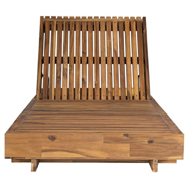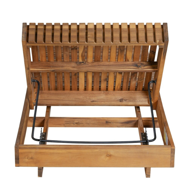 Slatted Teak Outdoor Sun Lounger with Adjustable Backrest