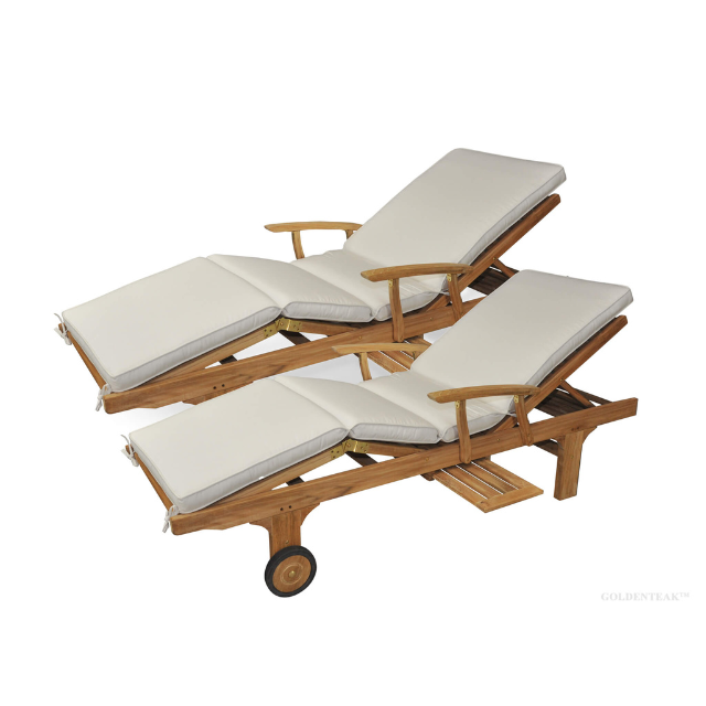 Teak Cabana Cushioned Sun Lounger with Wheels