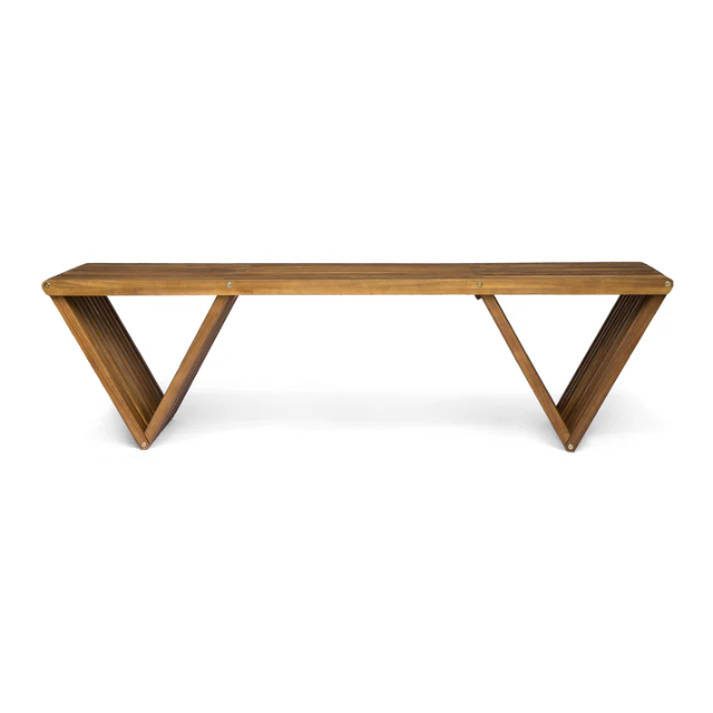 Teak Outdoor Resort Long Bench with Angled Slatted Base Design