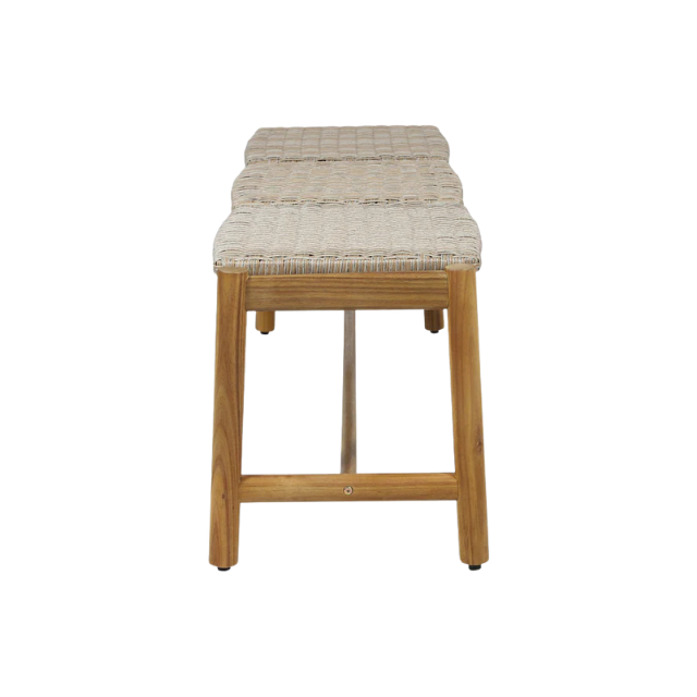 Teak Outdoor Resort Long Bench with Woven Seat Cushion Panels