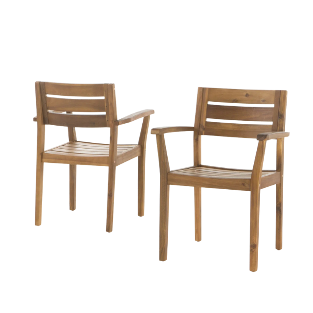 Teak Round Dining Set with Cross Leg Table and Slatted Armrest Chairs