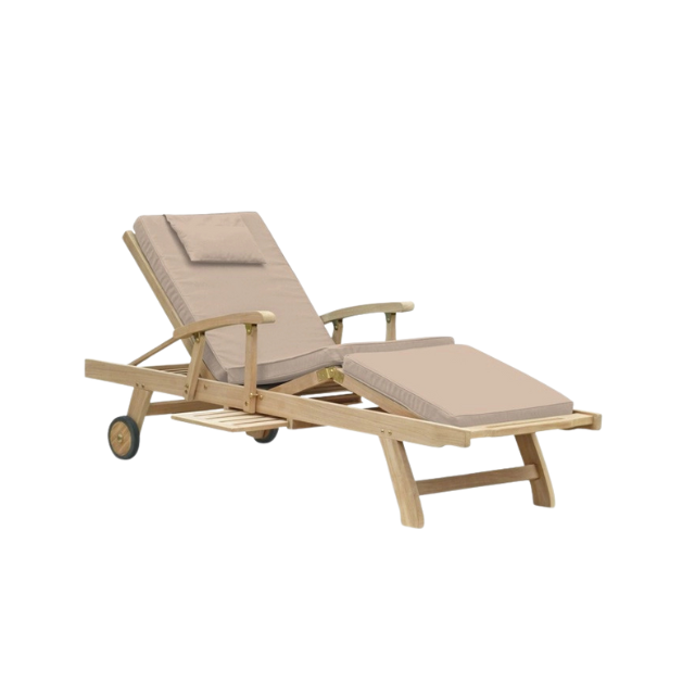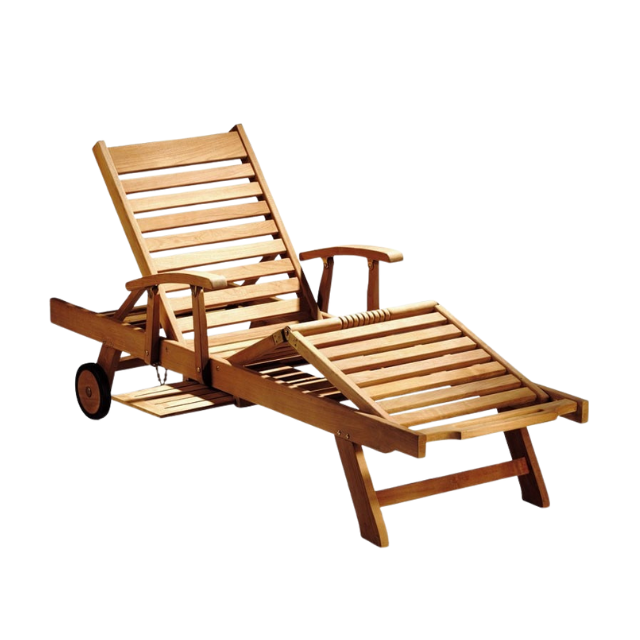 Teak Sun Lounger with Adjustable Backrest Side Tray and Arm Support