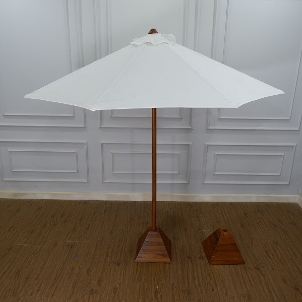 umbrella teak wood white fabric outdoor.
