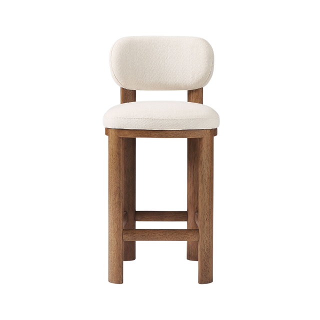 Upholstered Wooden Bar Chair with Soft Backrest and Padded Seat