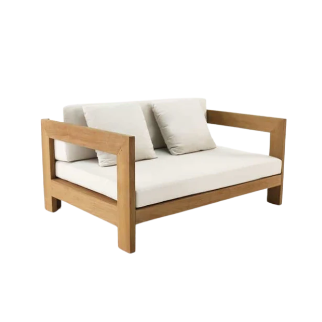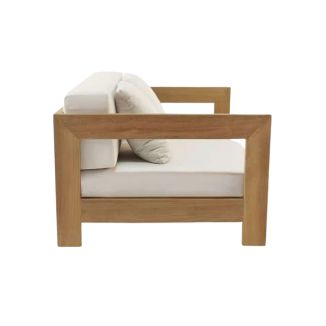 Wide Seat Garden Deep Sofa Teak Wood Two Seater with Loose Cushion